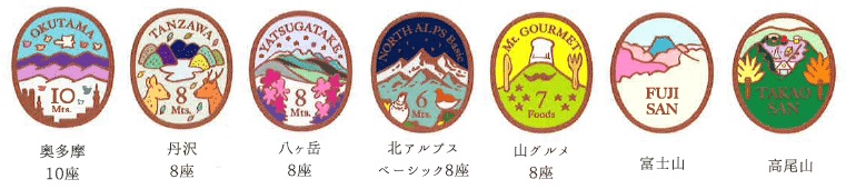 ・奥多摩10座……御岳山、日の出山、浅間嶺、岩茸石山、三頭山、大岳山、御前山、鷹ノ巣山、川苔山、雲取山