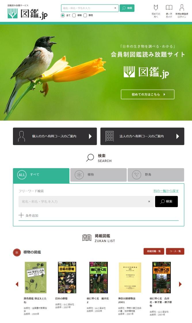「図鑑.jp」は、専門性の高い生物図鑑を電子書籍の読み放題・サブスクリプション方式で提供するウェブサービスです。2017年1月17日に植物、野鳥コースからスタートし、順調に会員を増やしています。