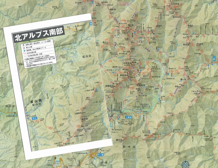 切り取って携行できるコースタイム付き広域マップを、全冊に綴じ込み付録としてつけました。広げると左右373ミリ×天地545ミリの大きさになり、掲載したコースのすべてを一枚の地図で見ることができます。ルートの概要をつかむ際や、実際に山で山座同定をするときなどにも便利な、実用価値の高い綴じ込み付録です。