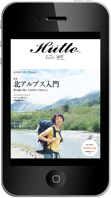 ■『Hütte(ヒュッテ)』 とは電子雑誌『Hütte(ヒュッテ)』のiPad版は、2011年5月に発売以来、リッチコンテンツ化したデジタル版が紙版とほぼ同時に配信されています。「Adobe® Digital Publishing Suite」を利用して制作し、コンテンツ追加型アプリケーションを用いた電子雑誌として、国内で初めて発売され、360度回転する広告や、端末の画面サイズに適した見やすいレイアウトなどが大変好評で、累計16,000ダウンロードを超えています。