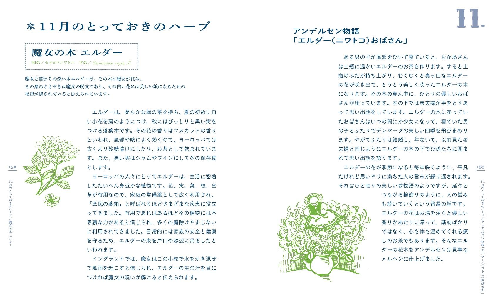 それぞれの月には、「季(とき)のことば」「祭り」「とっておきのハーブ」「おいしい魔女のレシピ」「魔女の手仕事」「魔女のお茶時間」を紹介。メイデーやハロウィーンのはじまりから魔女の飛行の秘密まで。1年を通して、日々を大切に楽しむためのアイデアや、自然との付き合い方までが満載です。「魔女っていったい何?」という疑問にも答えてくれる一冊です。