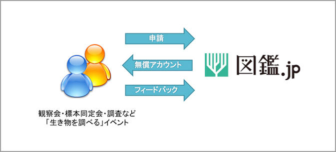 このたび、「実際に”調べる時”に使用して図鑑.jpの利便性がよくわかった」というユーザの声を受け、また使用したユーザからのフィードバックを得ること、環境保全・環境教育の普及・啓発活動に貢献することを目的として、イベントへの1週間限定無償アカウントの提供を行います。