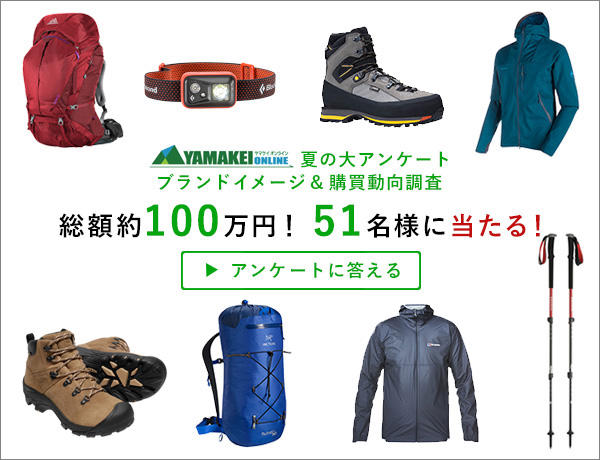 登山人口、700万人~800万人といわれる現在、実際の登山愛好者がどのような登山用品を購買しているのかを調べるため、山と溪谷社では、同社が運営する登山情報サイト「ヤマケイオンライン / Yamakei Online(http://www.yamakei-online.com/)」において、「ヤマケイオンライン ブランドイメージ&購買動向調査(Yamakei Online Brand Image Survey/YOLBIS)」と題したアンケート調査を現在、実施しています。