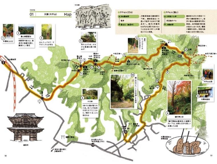 本書では、「鎌倉」、「逗子・葉山」、「三浦・横須賀」と特徴ある3つのエリアに分け、計16コースを紹介しています。