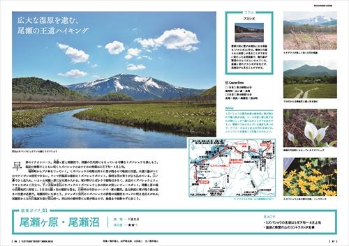 この夏は尾瀬に行きましょう! 一冊丸ごと尾瀬の魅力を紹介した綴じ込み小冊子です。燧ヶ岳、至仏山など登山コースや尾瀬周辺ハイキングコースを掲載します。