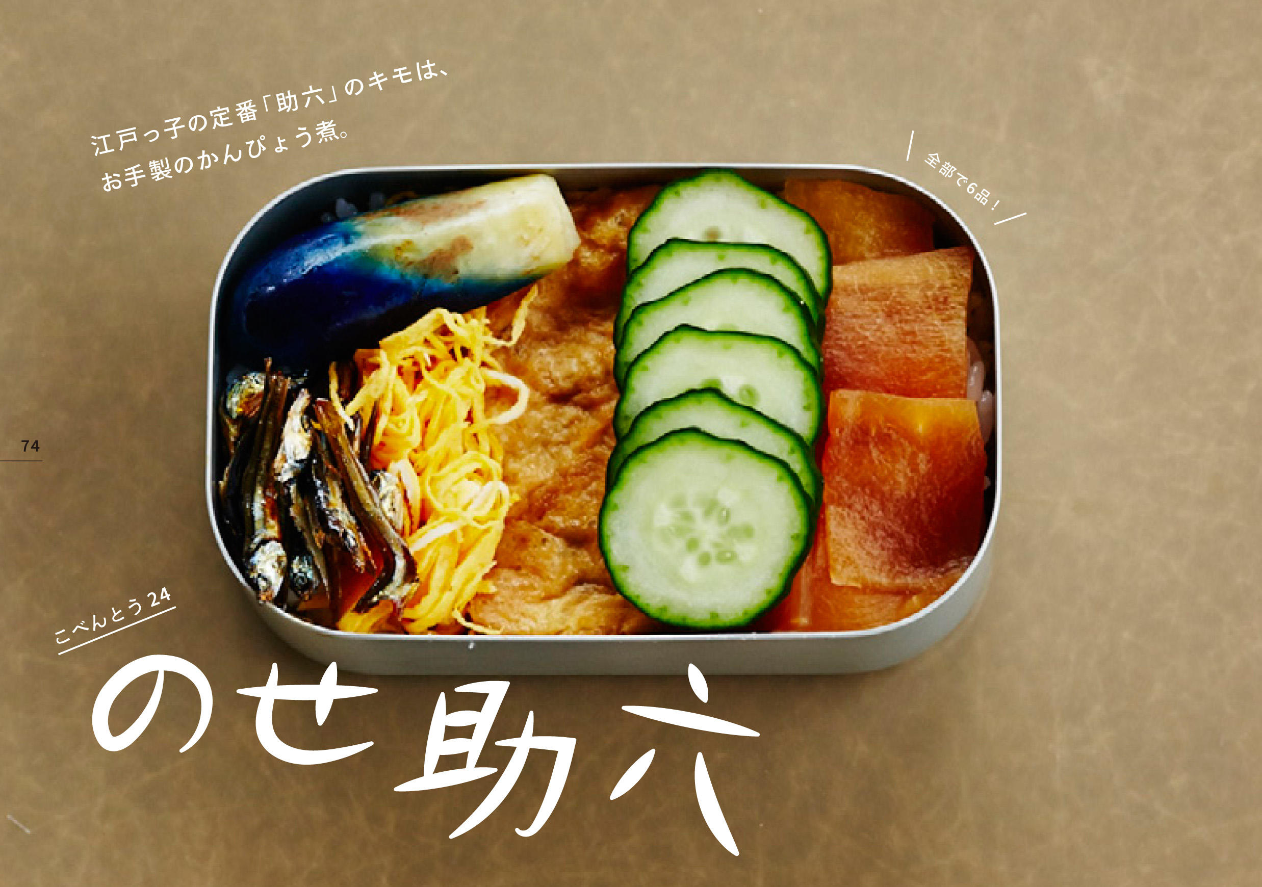 こべんとうの「こ」は、「小さい」という意味だけでなく、 子どものためにつくる「こ」、 愛情を「こめる」、「こだわり」などの「こ」など、いろいろな意味を込めています。 本書『こべんとう』の完成写真のほとんどを実物大で掲載しています。