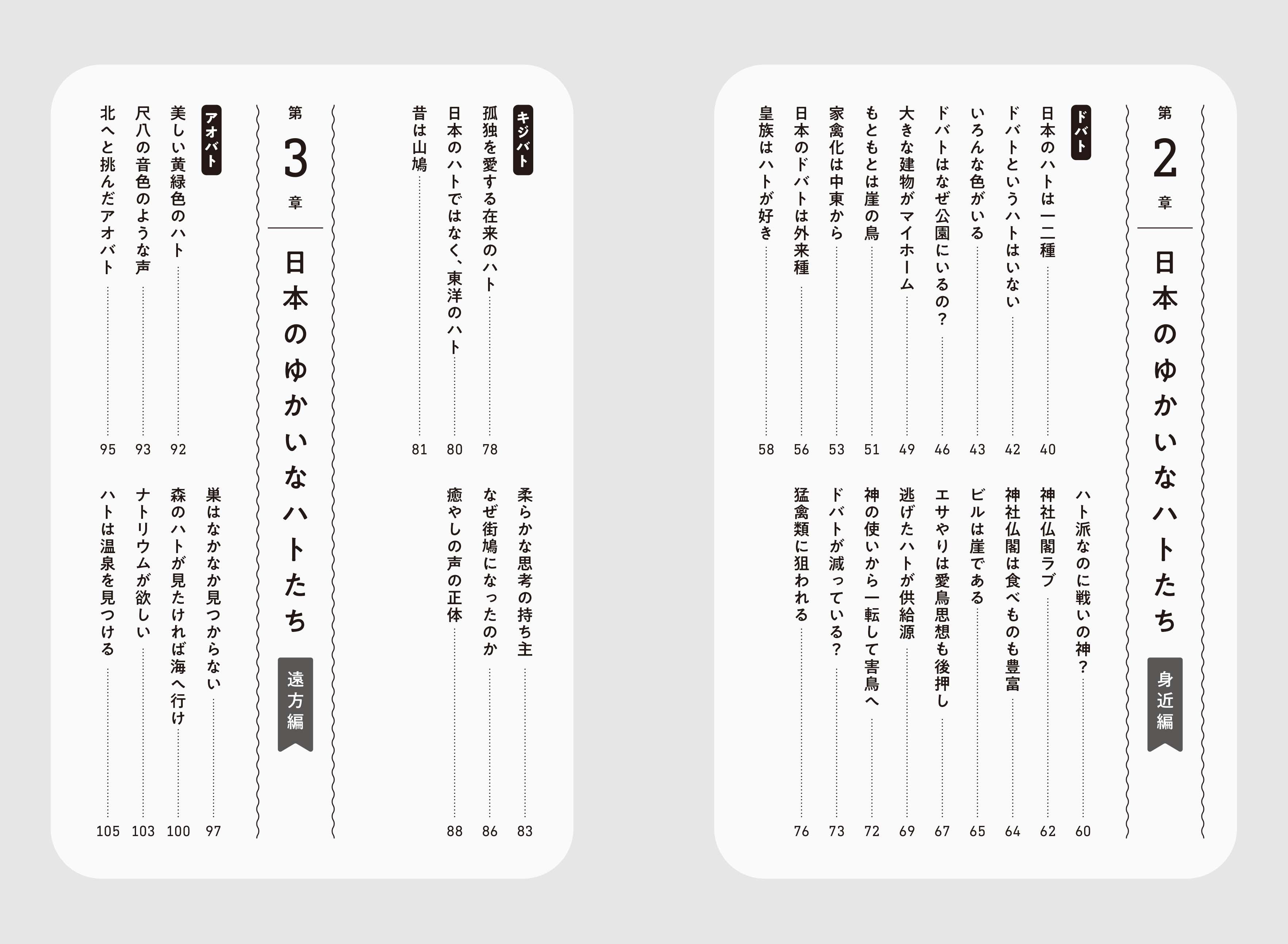 その他、日本や世界のユニークなハト、絶滅したハトのエピソードなど、思わず誰かに話したくなる秘密が満載。