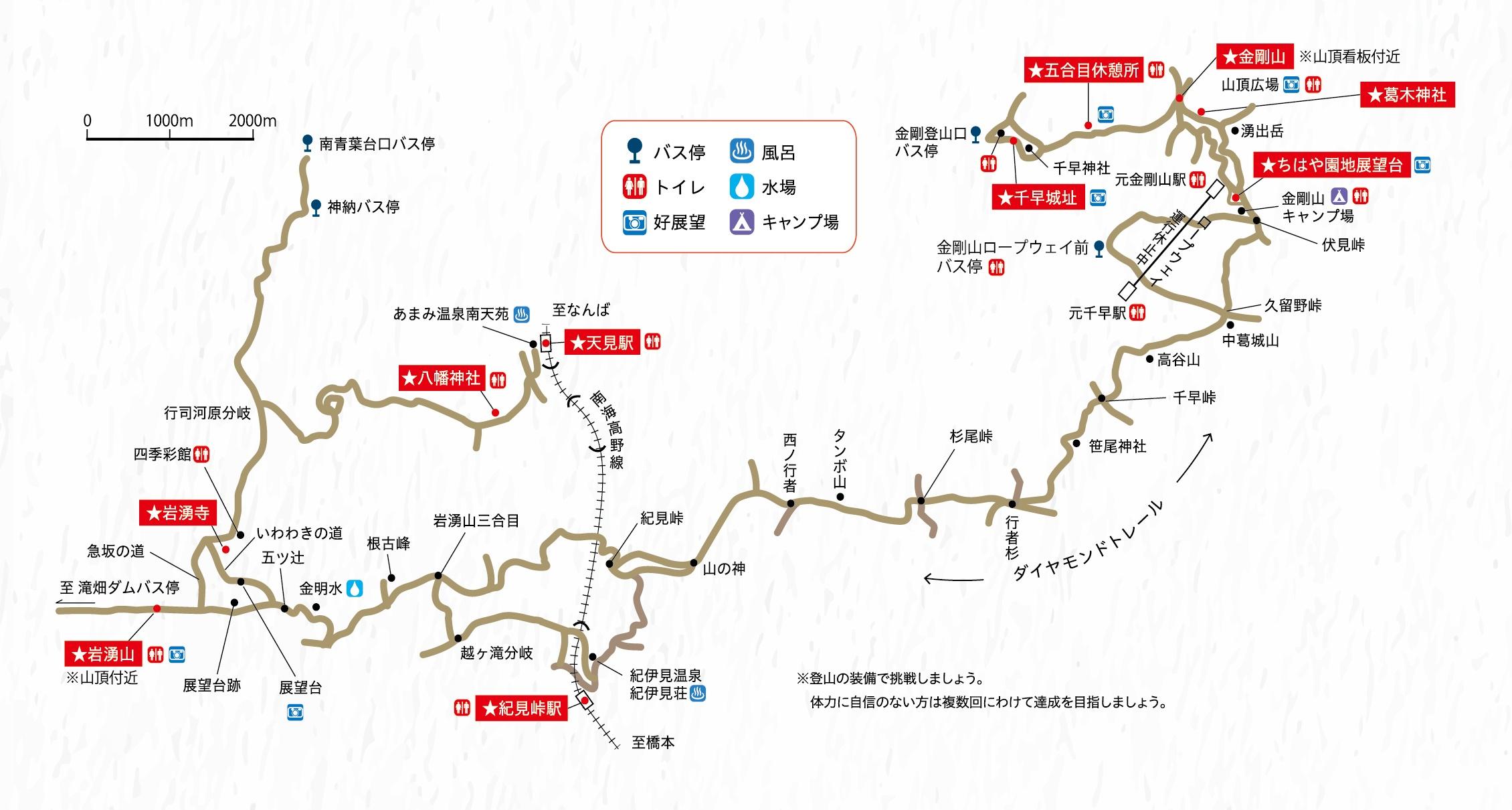 千早城址、五合目休憩所、金剛山、葛木神社、ちはや園地展望台、紀見峠駅、岩湧山、岩湧寺、八幡神社、天見駅
