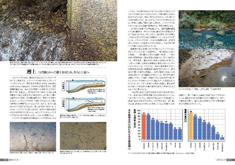 ニホンウナギについて、シラスウナギとして日本沿岸にたどり着き、そこから遡上して生活し、成熟して産卵のために日本を離れるまでの生活を、内山氏のダイナミックな写真で展開。