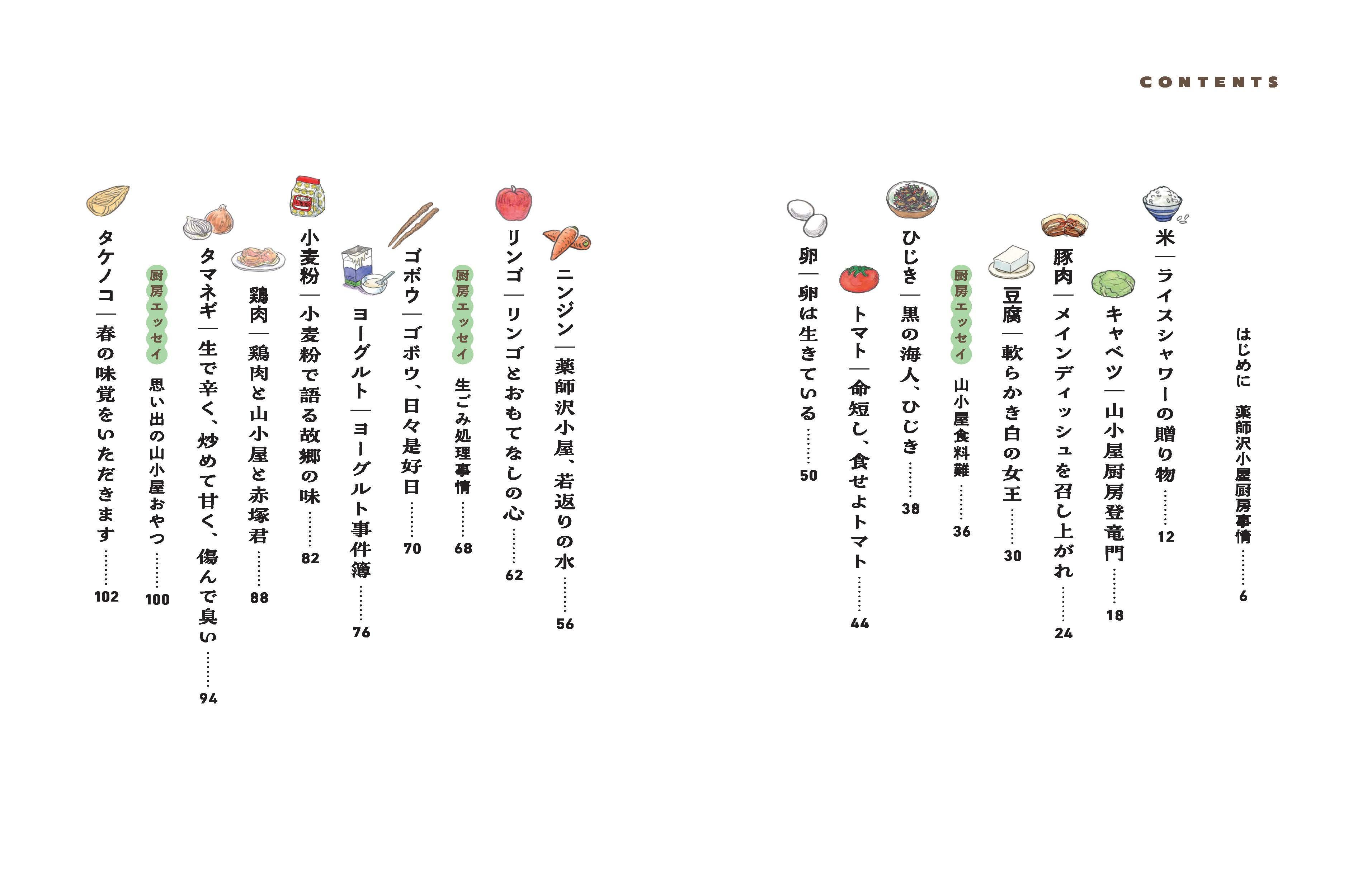 食材やメニューを切り口にして、山小屋料理人が抱える苦悩と喜びをユーモラスな文と親しみのわくイラストで綴ります。