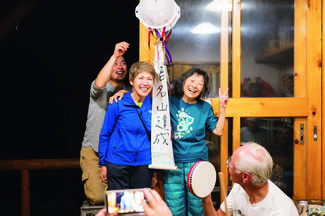 百名山を登った方には、それぞれ100個の思い出があるはずだけど、最後の一座が光岳なんて嬉しい。その瞬間を一緒にお祝いしたいな。私たちになにができるだろう。そんな想いからスタートしたのが、くす玉を使ったお祝いだ。くす玉でお祝いだなんて上等に聞こえるが、実際はザルで手作りしたくす玉を使っている。そんなに大きな声では言えない出来でお恥ずかしい。