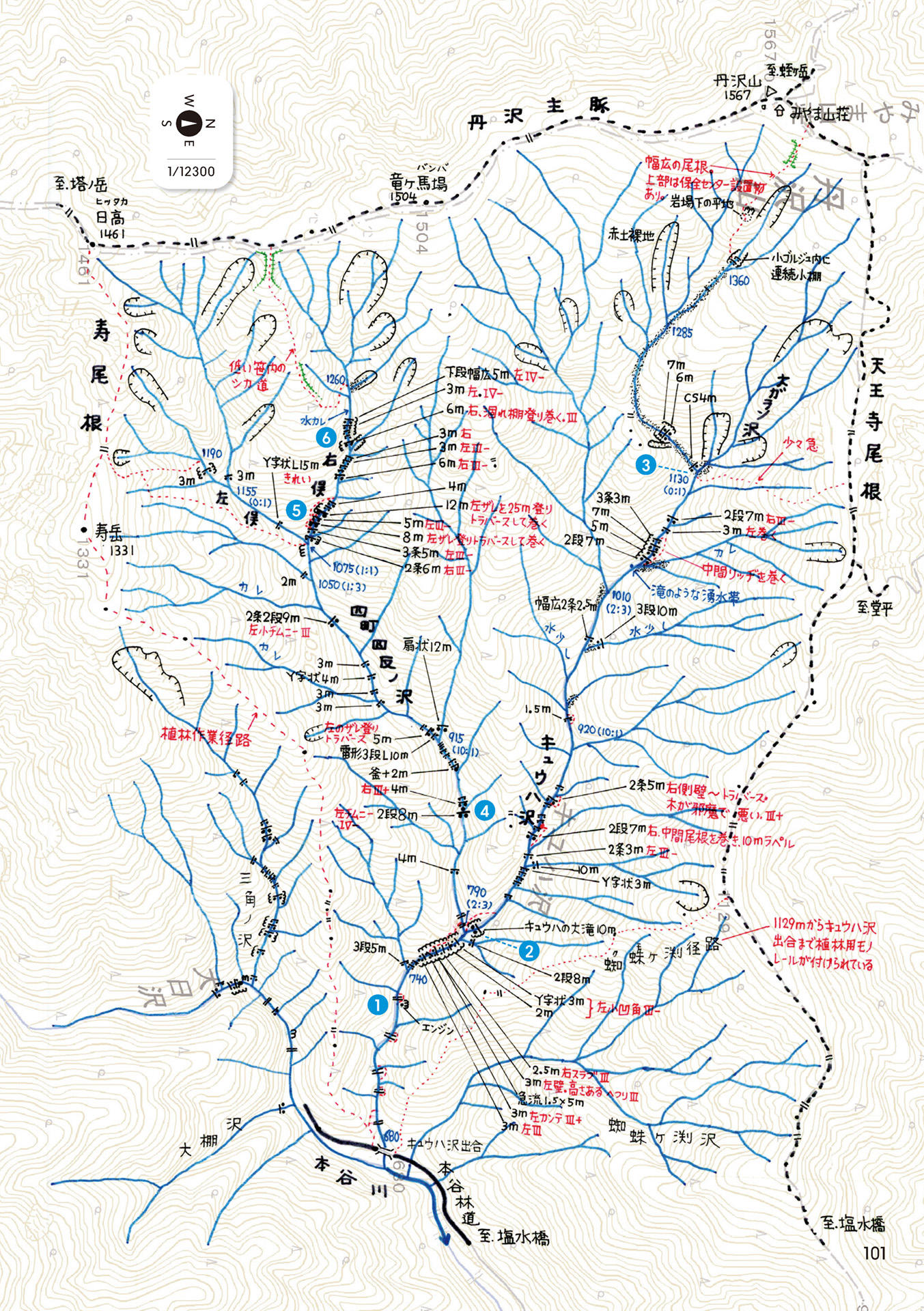 ●全ルート実地踏査!地形図ベースの手描き遡行図!